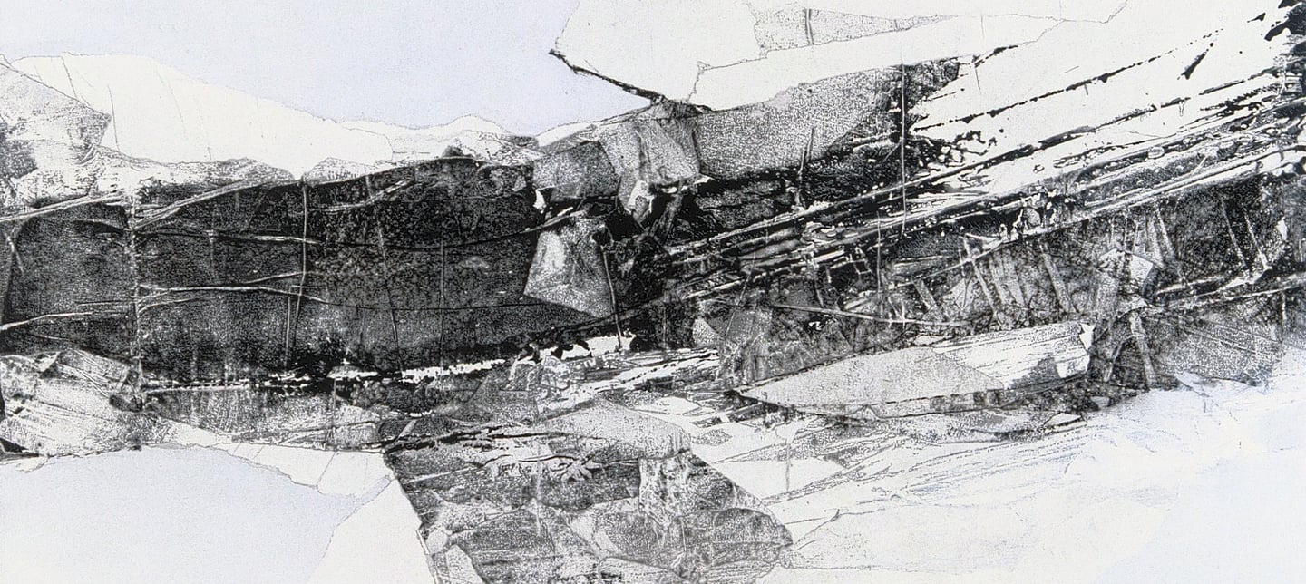 " L'estampe du gel". 2001. collage, 170 x 140 cm.