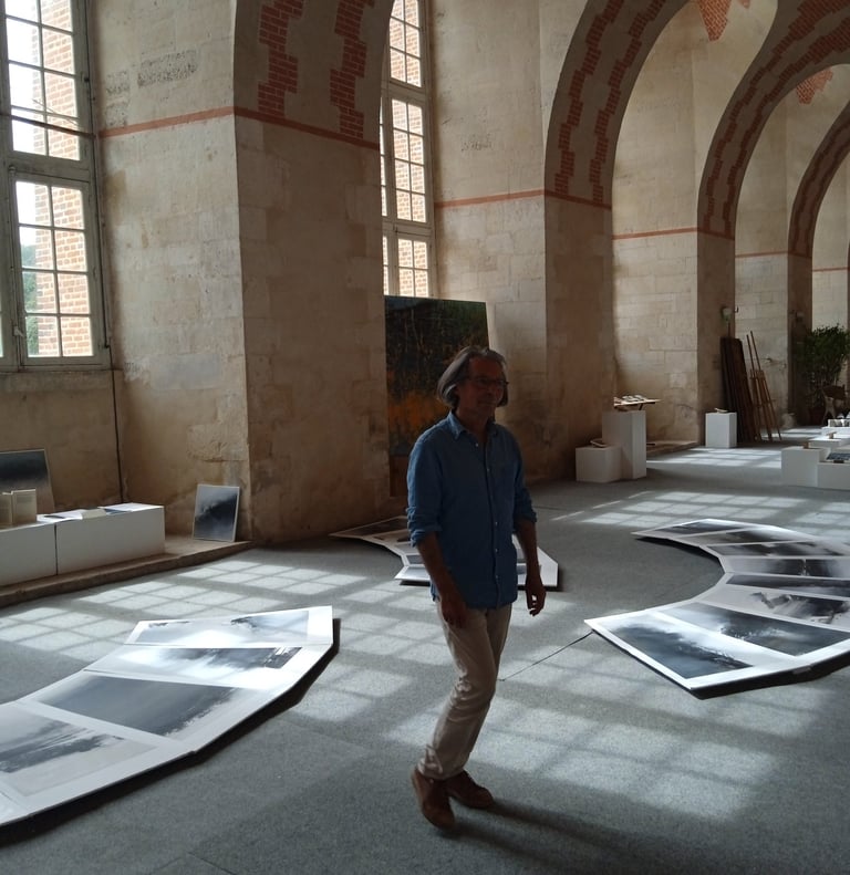 Préparation d'une exposition dans la chapelle des Paulines à Tréguier et réalisation d'un livre d'artiste avec Anne Laure Lussou intitulé « Peu à peu un horizon naît ».