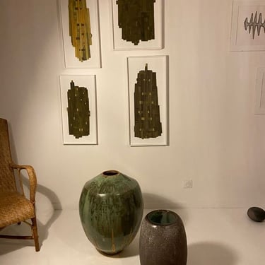 Dans mes sculptures en grès j’intègre très régulièrement du lin, divers textiles, de la paille, du crin qui donnent aux pièces une vibration poétique évoquant des stèles, pierres levées, pierres de mémoire… Souvent associées à des dessins, gravures, elles prennent leur sens véritable en installation car je les pense intégrées à une histoire globale.